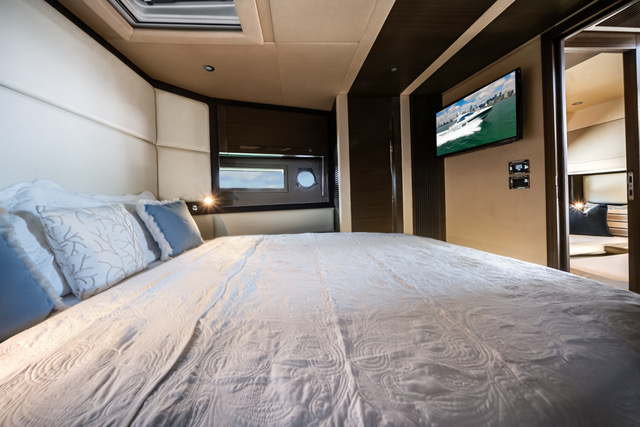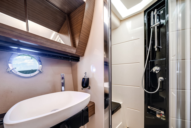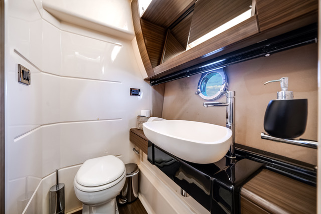• Denna modell har en välplanerad och funktionell layout med tre hytter. Förpik med dubbelsäng, en hytt midskepps med två separata bäddar samt en akterhytt med dubbelsäng. Totalt erbjuder båten 6st fasta kojplatser samt 2st badrum med toalett och dusch.