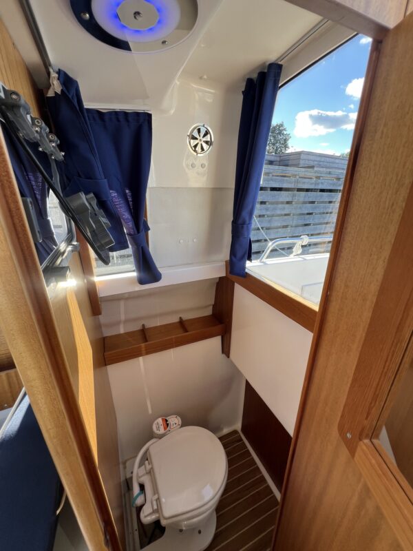- En smart, praktisk och mycket genomtänkt kabinbåt. Passar lika bra för längre turer med familjen som för ensamt fiske. Båten är i mycket gott skick, och har mängder med utrustning såsom bogpropeller, elektriskt ankarspel, automatiska trimplan, spis & kyl samt en toalett i ett separat utrymme! Sovplats i för och akter till totalt 4 personer.