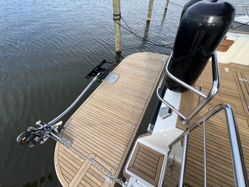 • Ankarspel i fören med rostfri kätting, monterat 2022