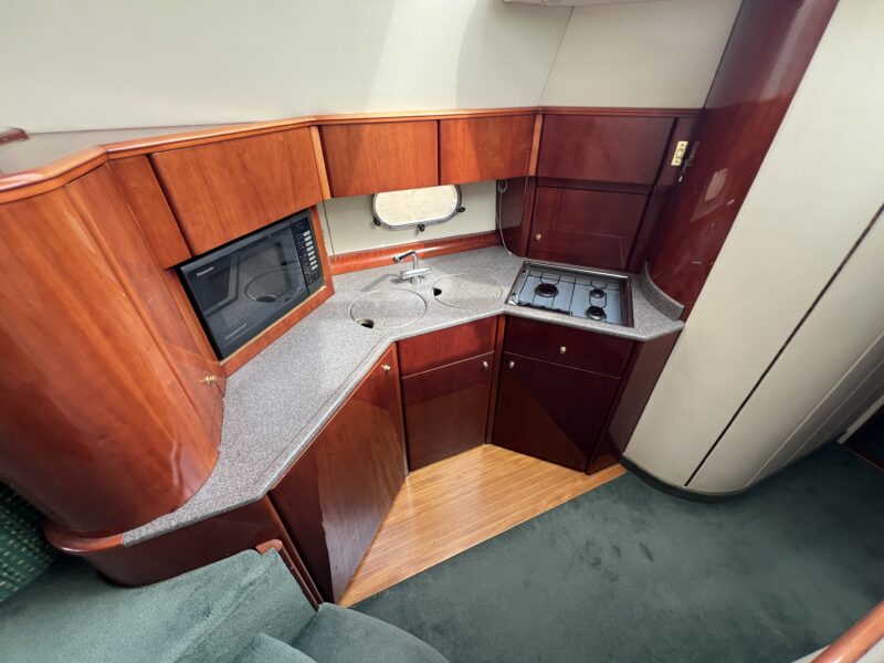 - Mycket fin modell med integrerad trappa till flybridge samt rejält akterdäck med teakdurk.