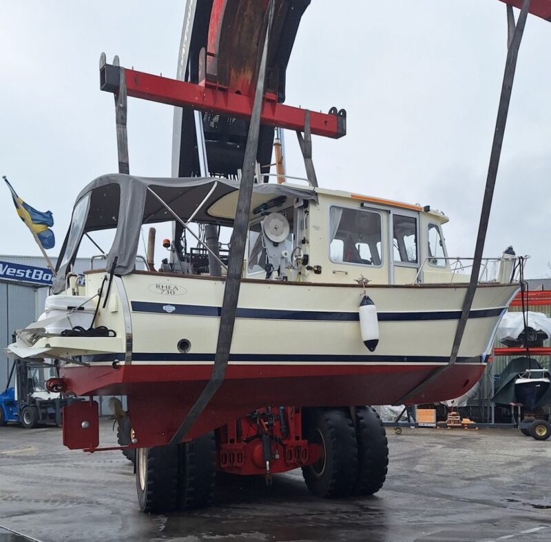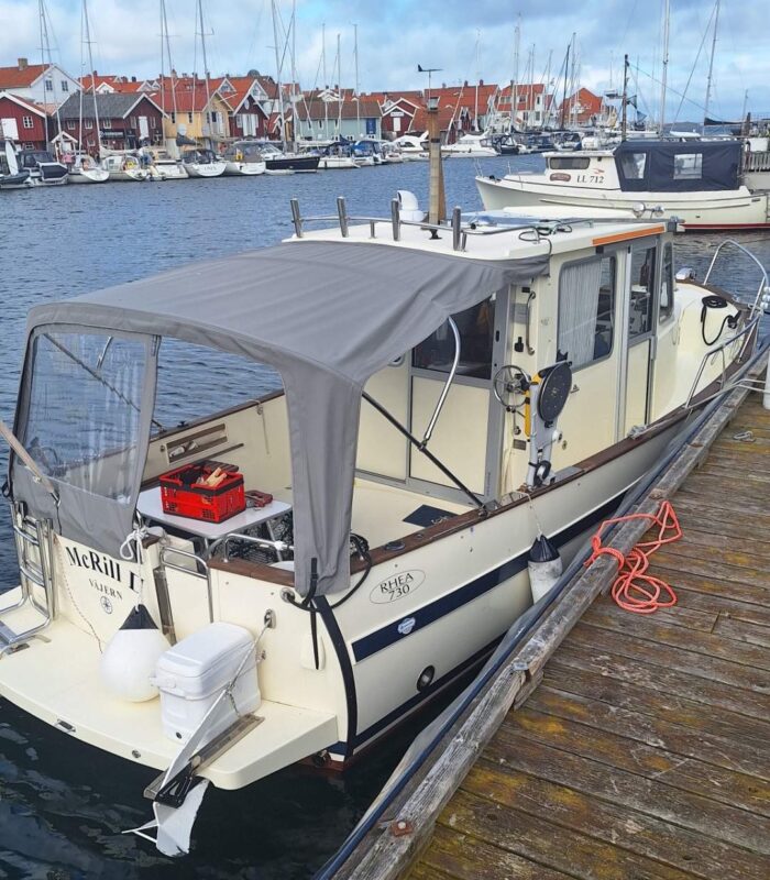 - Denna påkostade praktiska stabila och rymliga Rhea 730, har fått det mesta av allt. Nuvarande och första ägaren har inomhus förvarat, vårdat och uppdaterat samt utrustat båten löpande sedan ny. Båten har bland annat fått heltäckande kapell över akterdäck, el-toalett, solceller, LED-strålkastare, lindragare m.m. Allt i bästa kvalité.