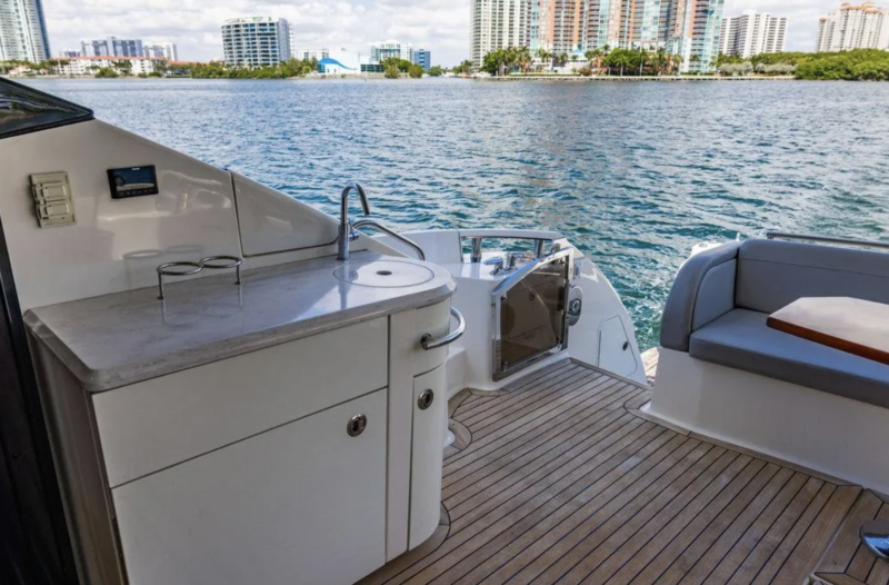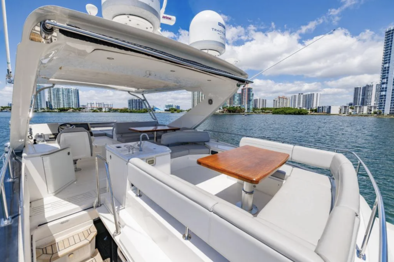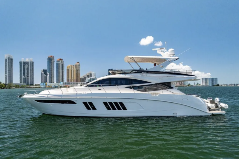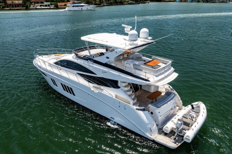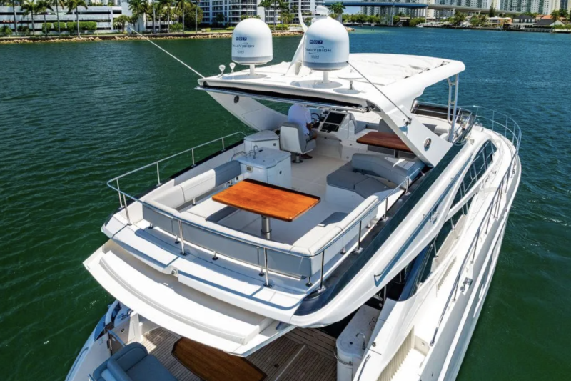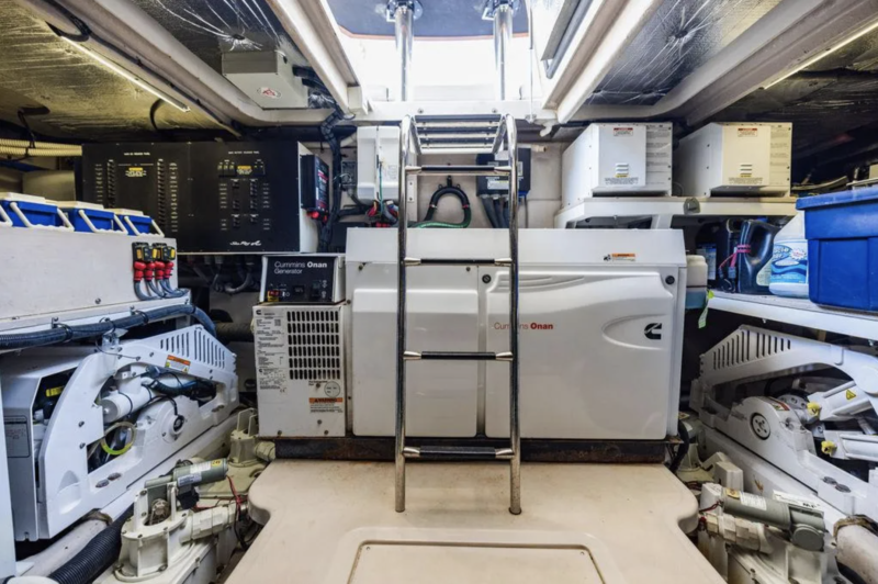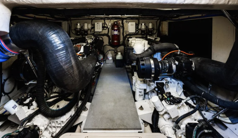 - Den drivs av 2st Caterpillar C-18-motorer med en sammanlagd effekt på 2300 hk ger en god marschfart på 25 knop. Den är också utrustad med 2 x Seakeeper Gyro-stabilisatorer som säkerställer att alla gäster färdas bekvämt oavsett förhållanden.
