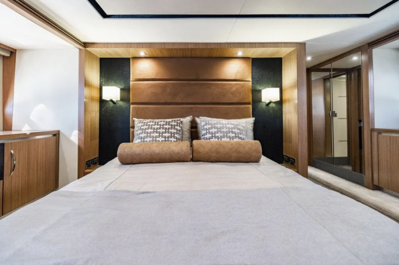 - Imponerande planlösning som erbjuder 4 kabiner och 3 badrum, som inkluderar en fullbreds mastercabin med tillhörande badrum. Kaptenen har en separat kaptenshytt med eget badrum och oberoende luftkonditionering.