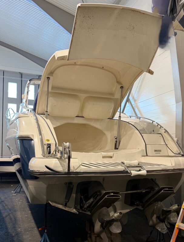 - Båten är förvarad inomhus och har fått service av marinverkstad. Senast servad med oljor, filter, anoder. Även drevbälgar är nyligen skiftade.